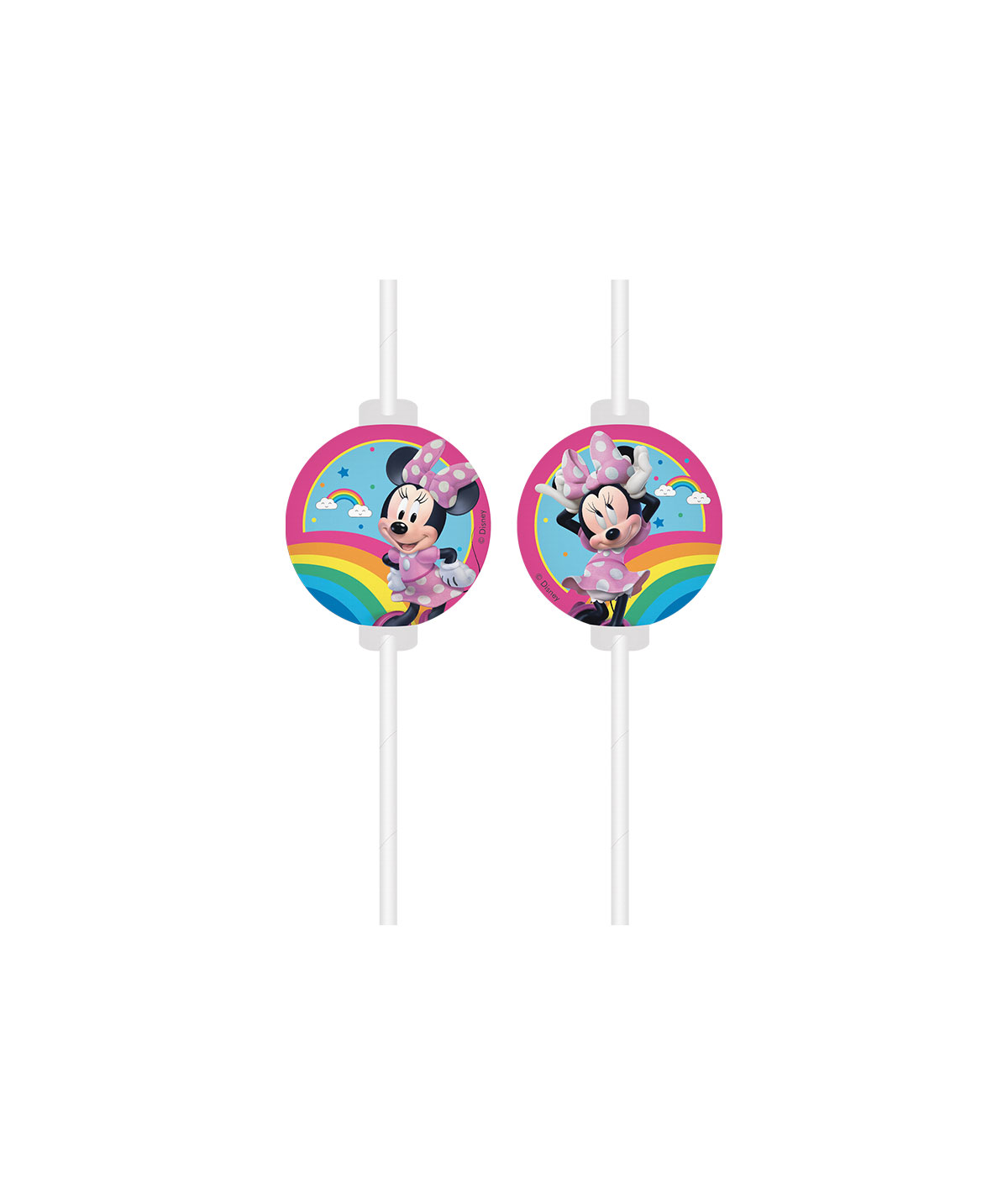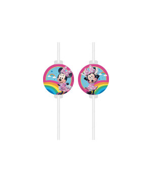 Živopisne papirnate slamčice za party osvježavajuće napitke. Svaka slamčica ima lik Minnie postavljene kao papirnati ukras na slamčicu. Servirajte ih uz napitke ili iskoristite za dekoraciju rođendanskog stola.