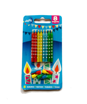 - Pakiranje: 12 rođendanskih svjećica u plavoj boji; 12 držača za svjećice